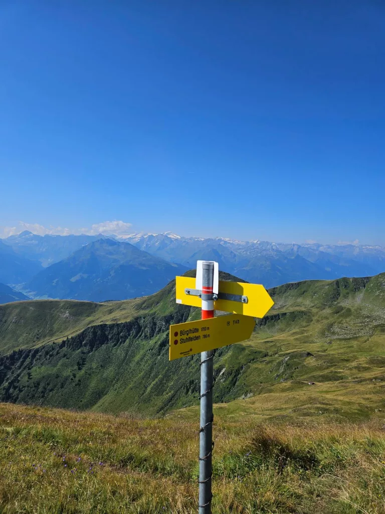 Wer eine etwas anspruchsvollere Wanderung sucht und dabei die einzigartigen Almböden genießen möchte – deren beeindruckende Kulisse jede Mühe lohnt –, ist auf dem Gaisstein genau richtig. Wir sind mit dem Auto zur Bürglhütte gefahren und von dort in knapp zwei Stunden auf den Gipfel gewandert. Kurz vor dem Ziel wird´s spannend: Links und rechts geht es steil runter – kein Spaß, wenn man Höhenangst hat.